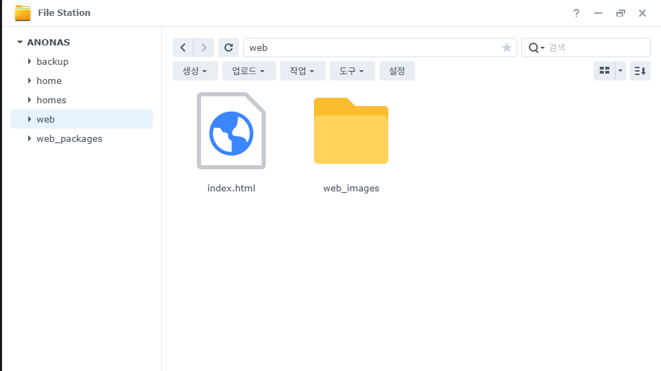 File Station으로 가보면 web, web_packages 폴더가 생겼다.