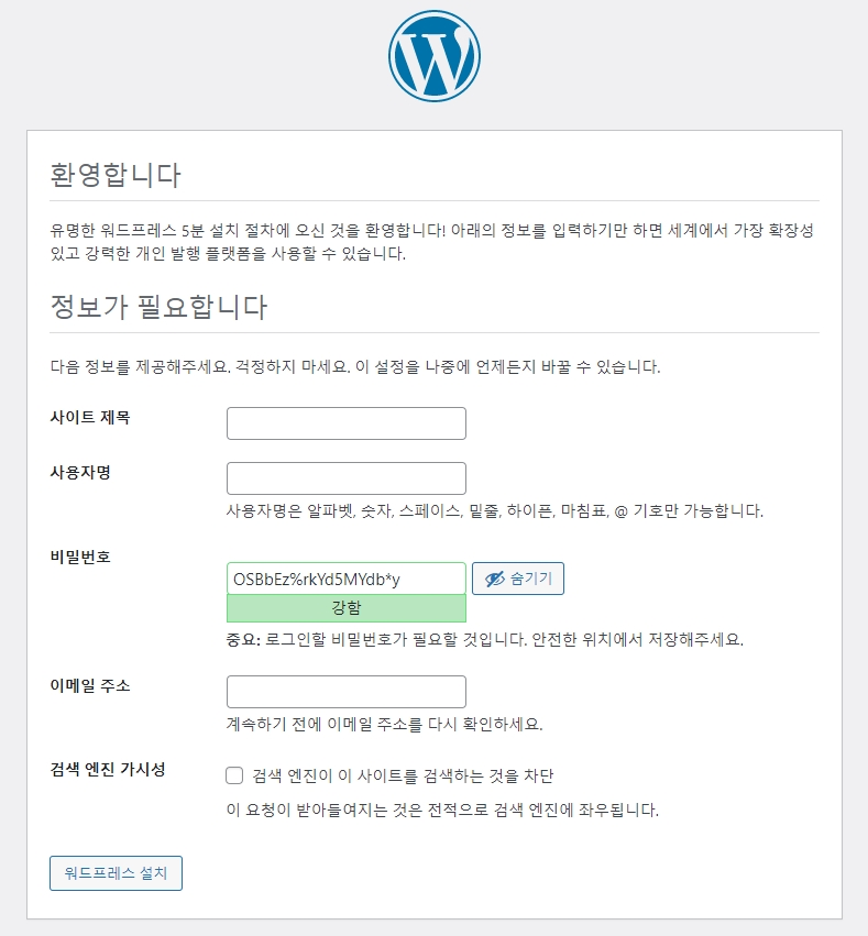 그리고 wordpress 실행하면 끝.