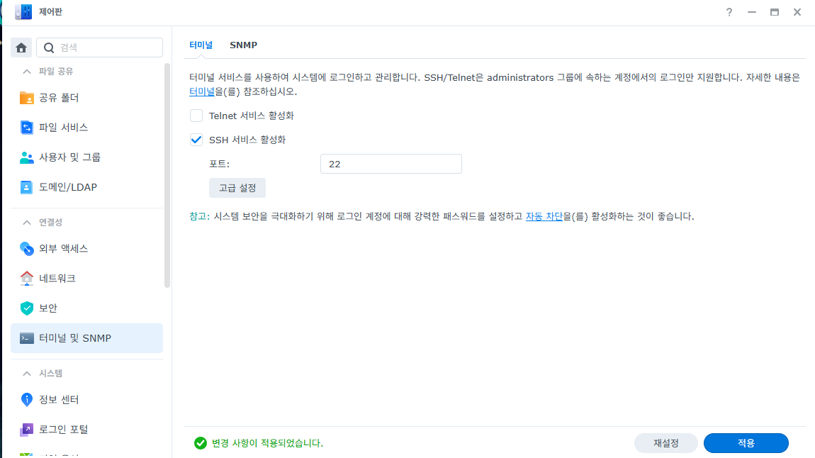 ssh를 열어주고 작업이 끝나면 다시 닫아준다. (해킹 당할 수도..?)