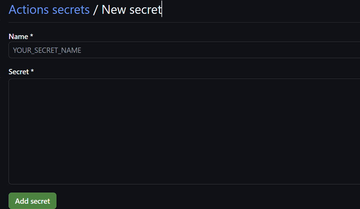 Name에는 변수명을, Secret에는 값을 입력하고 "add secret"을 누른다.