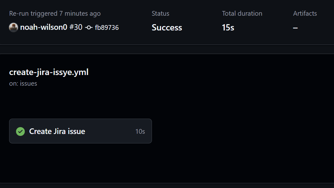 run: echo "Jira Issue ${{ steps.issue-parser.outputs.parentKey }}/${{ steps.create.outputs.issue }} was created"