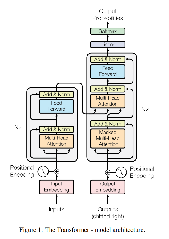 - Auto-regressive(AR) property를 보존하기 위해 잘못된 연결에 대해 -inf로 마스킹하였다. (inf는 softmax에 의해 0이 되기 때문입니다. + 마스킹 위치는 현재 단어 이후의 position이라고 생각하면 될 것 같습니다. AR property에 대해서는 wikipedia를 권합니다.)
