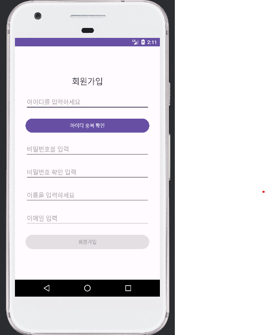 android:text="아이디 중복 확인"