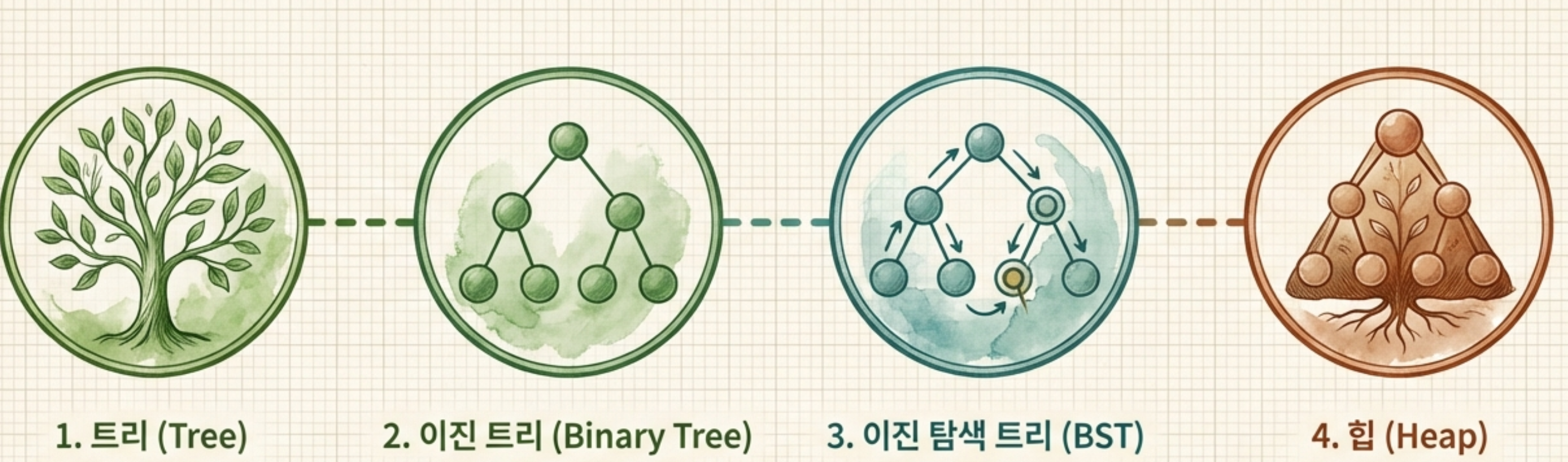 트리의 계층 구조와 기본 개념부터 힙에서 우선순위를 다루는 구조까지 개념을 이해하고, 차이점을 알아보자.