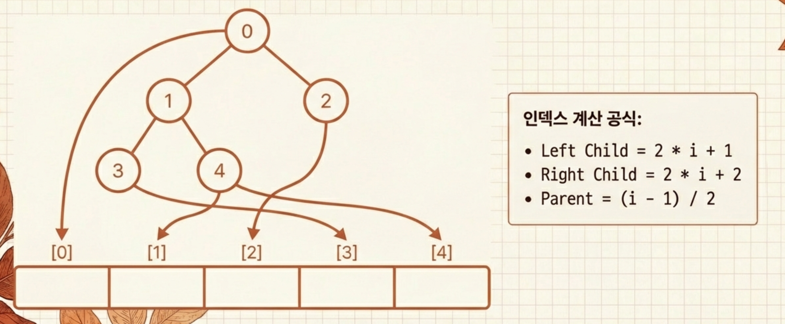 힙은 배열 형태로 값을 저장한다. 메모리 효율이 좋기 때문이다.