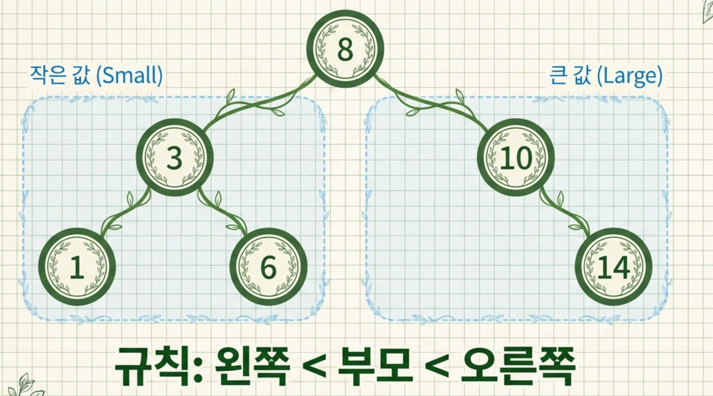 8을 기준으로 왼쪽 서브트리에는 3, 1, 6이 있는데 전부 8보다 '작음'을 알 수 있다.