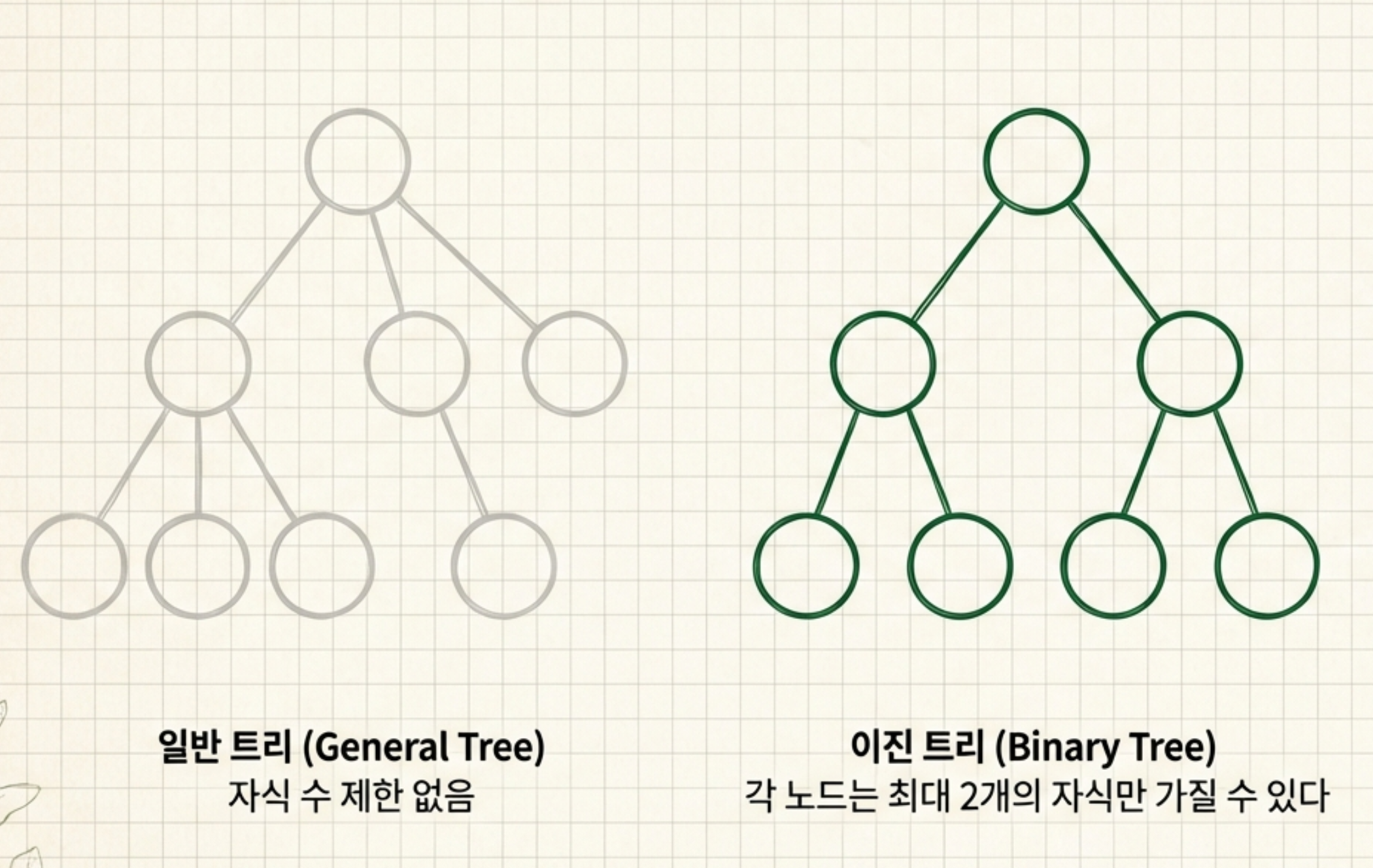이진 트리의 핵심은 각 노드가 최대 2개의 자식만 가질 수 있다는 것이다.