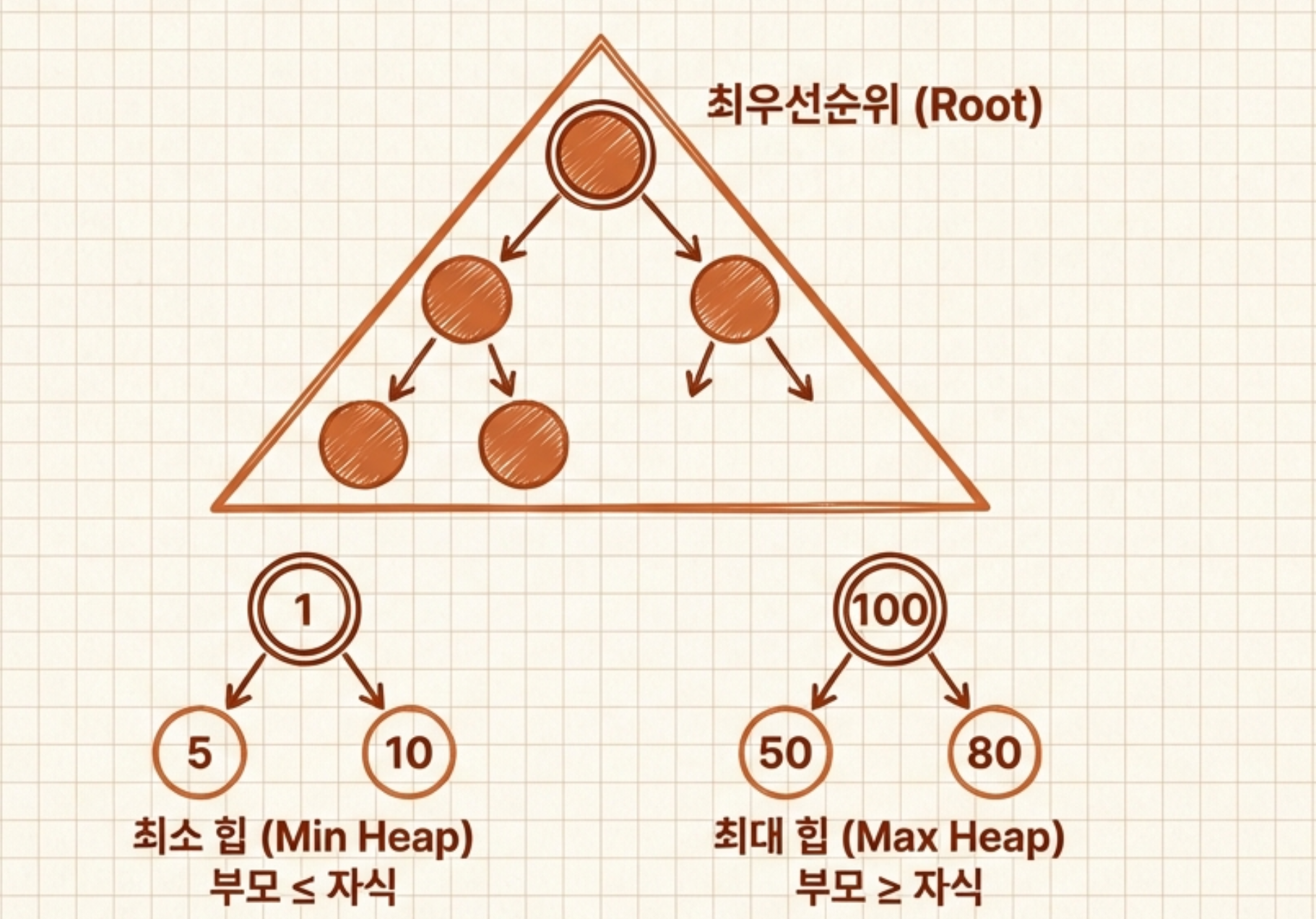 힙은 우선순위가 가장 높은 요소를 빠르게 꺼내기 위해 고안된 완전 이진 트리이다.