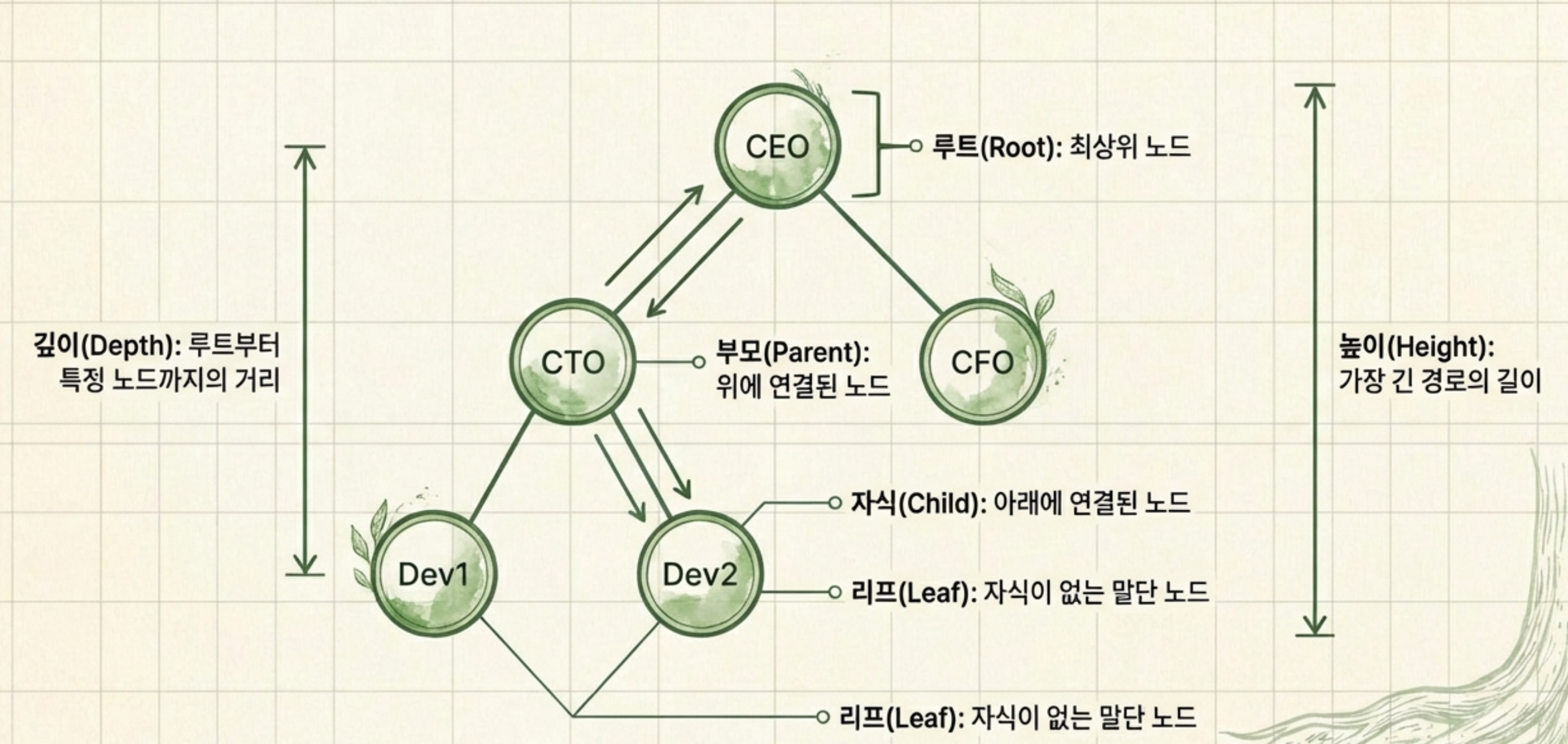 우리 주변에서 트리와 같은 구조를 예로 들면 아래와 같은 개념이 존재한다.