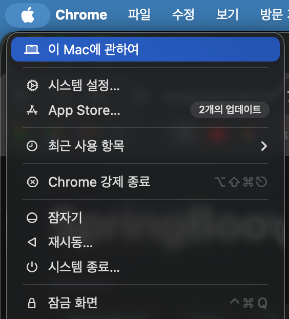 Apple 메뉴 | 이 Mac에 관하여 |