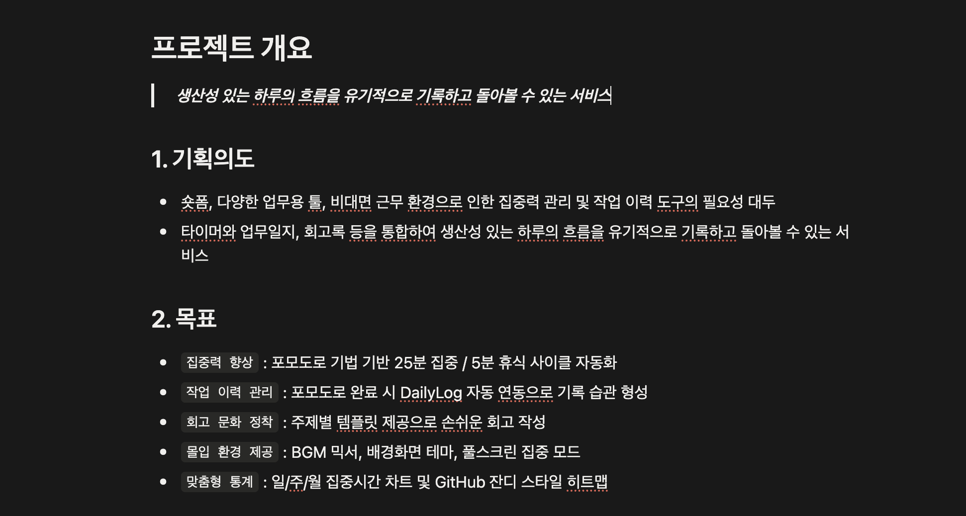 가장 먼저 정리한 것은 이 프로젝트가 어떤 서비스인지 한 문장으로 설명할 수 있는 기준이었다.