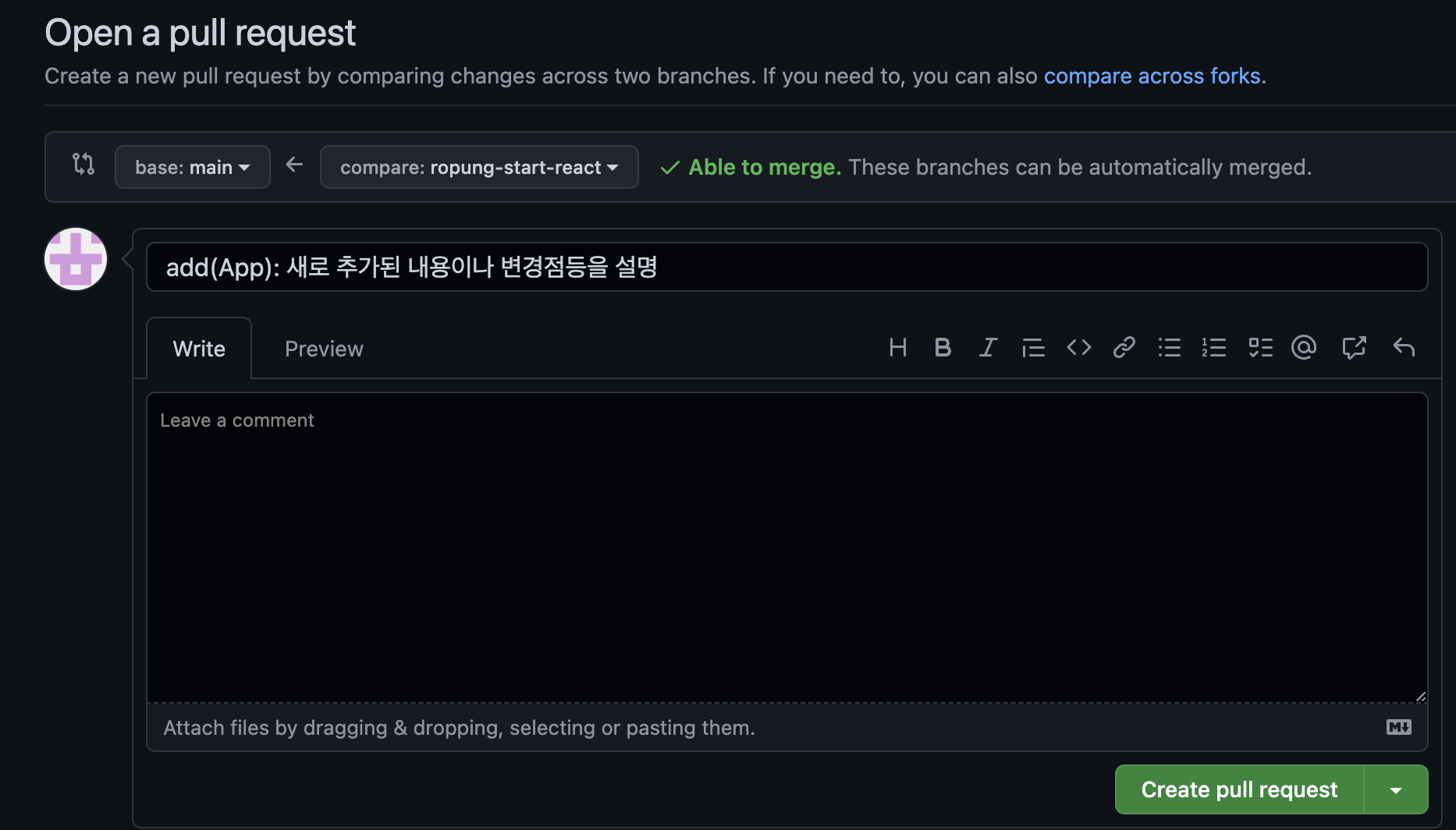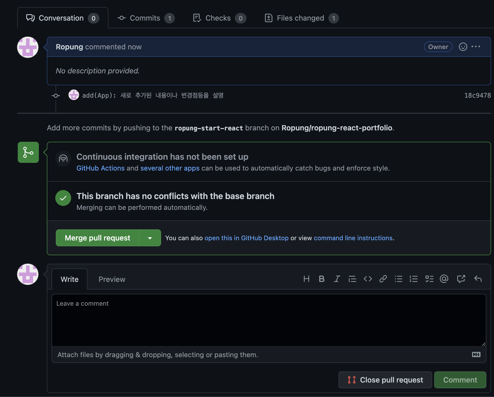 충돌이나 변경점등도 확인했고 문제가 없다고 생각해서 브랜치 작업자가 브랜치를 올리면