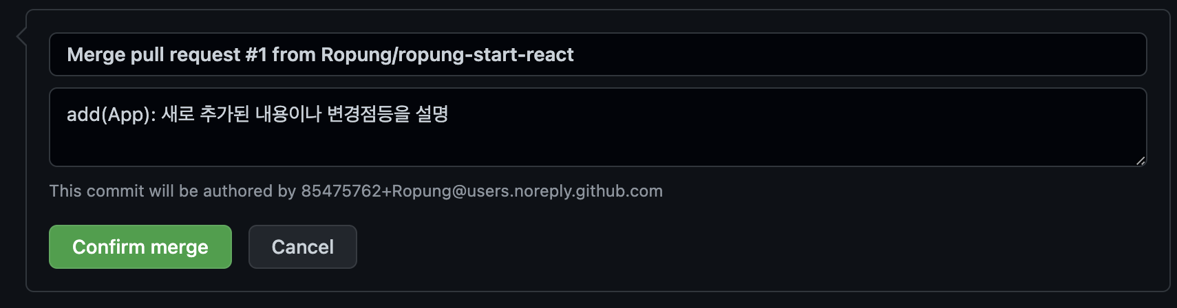 본 프로젝트에서는 혼자 사용하기떄문에 그대로 병합을 누른다.