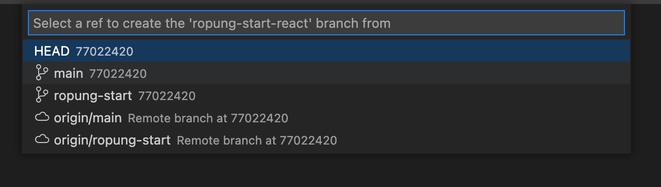 2번째 브랜치를 누르고 새롭게 사용할 브랜치 이름을 설정한다.