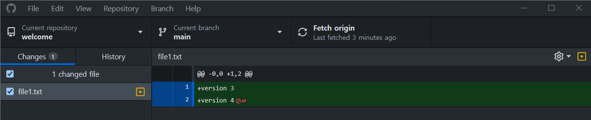 Github desktop에서 수정된 부분을 알려주고 있다.