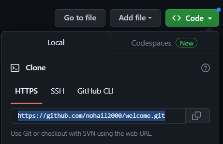 이것이 저장소의 주소이고 컴퓨터에 복제해야 한다. 이를 clone 이라고 한다.