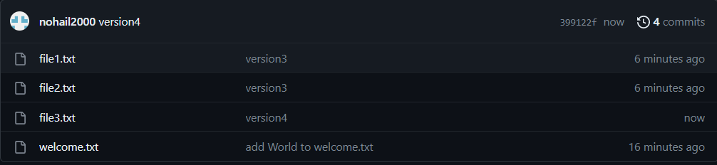file4.txt 파일을 추가하고 file2를 수정하여 version4를 생성하였다.