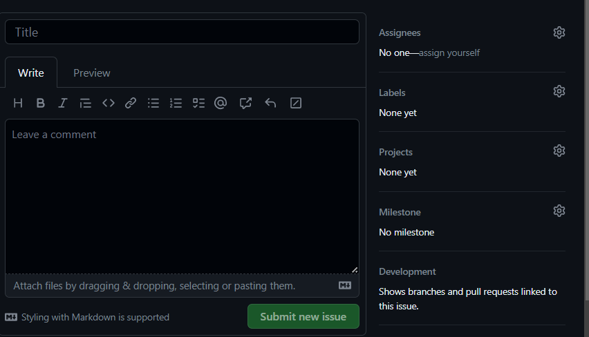 New issue를 클릭하면 새로운 이슈를 등록할 수 있다.