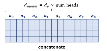 이렇게 각각 다른 관점으로 바라본 단어들에 대한 어텐션 행렬 총 8개를 concatenate한다.