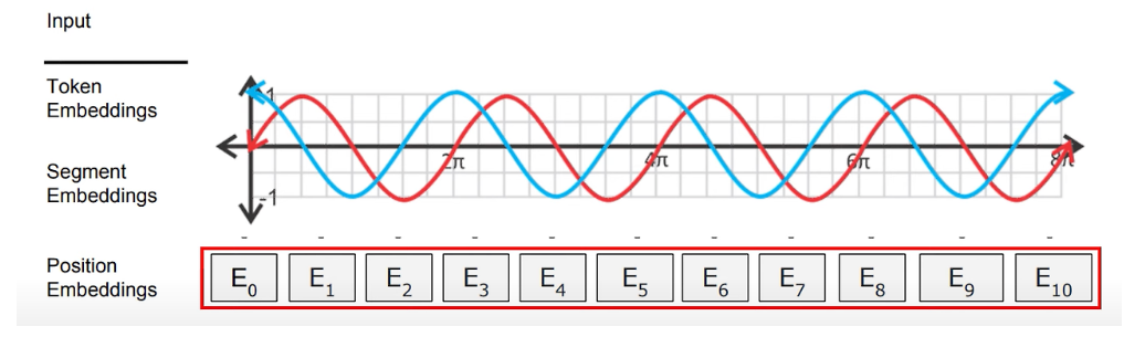 여기서 한 가지 드는 의문점은, 위 사진과 같이 반복되는 주기가 계속되면 결국 포지셔닝도 특정 토큰마다 겹치는 게 아닌가? 하는 생각이 들었는데 이 문제를 방지하기 위해 사용자가 입력할 수 있는 최대 길이. 즉, 모델의 최대 차원을 기준으로 함수를 스케일링함으로서 해결한다고 한다.