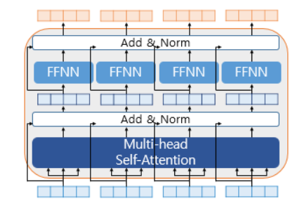 Multi-head Self Attention의 결과와 블록을 거치기 전의 input을 더하고, 이 값에 정규화를 한 값과 FFNN의 결과를 더한 다음 정규화를 해서 하나의 인코더 블록에서 두 번의 Skip connection을 거친다. 확실히 인코더 블록과 디코더 블록이 매우 많고, 학습 층이 깊으므로 안정적인 학습을 위해 사용된듯 하다.