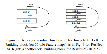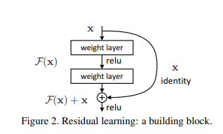 Residual learning은 몇 개의 layer마다 적용하는데, 적용의 기준이 되는 block은 아래와 같이 정의됨