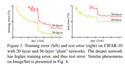(56-layer 신경망이 20-layer 신경망보다 error가 높다)