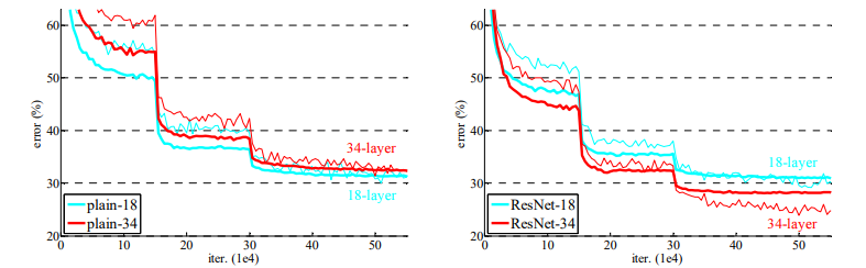 ResNet이 일반 신경망보다 일관되게 좋은 성능을 보임