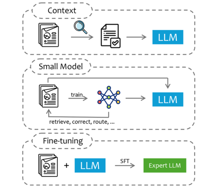 2. 특정 도메인 데이터로 small model을 학습시켜 추론, 관련 정보 추출, 가이드라인 생성, 검증, 분기 로직 등에 사용
