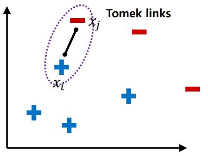 소수 클래스 근처의 다수 클래스를 제거하여 Decision Boundary를 명확히 하는 방법이다.
