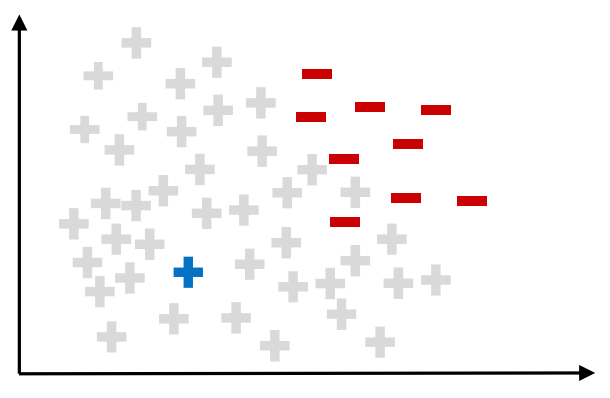 tomek links가 decision boundary 근처의 데이터를 제거하는 방법이었다면, CNN Rule은 반대로 decision boundary와 멀리 떨어진 다수 클래스 데이터를 모두 제거하는 방법이다.
