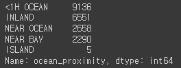 ocean_proximity 데이터 확인