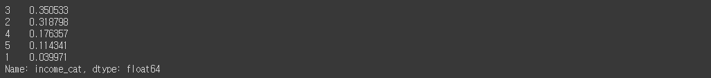 ## 테스트 세트에서 소득 카테고리의 비율을 확인