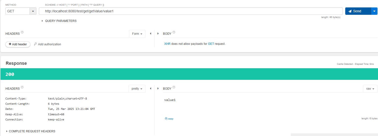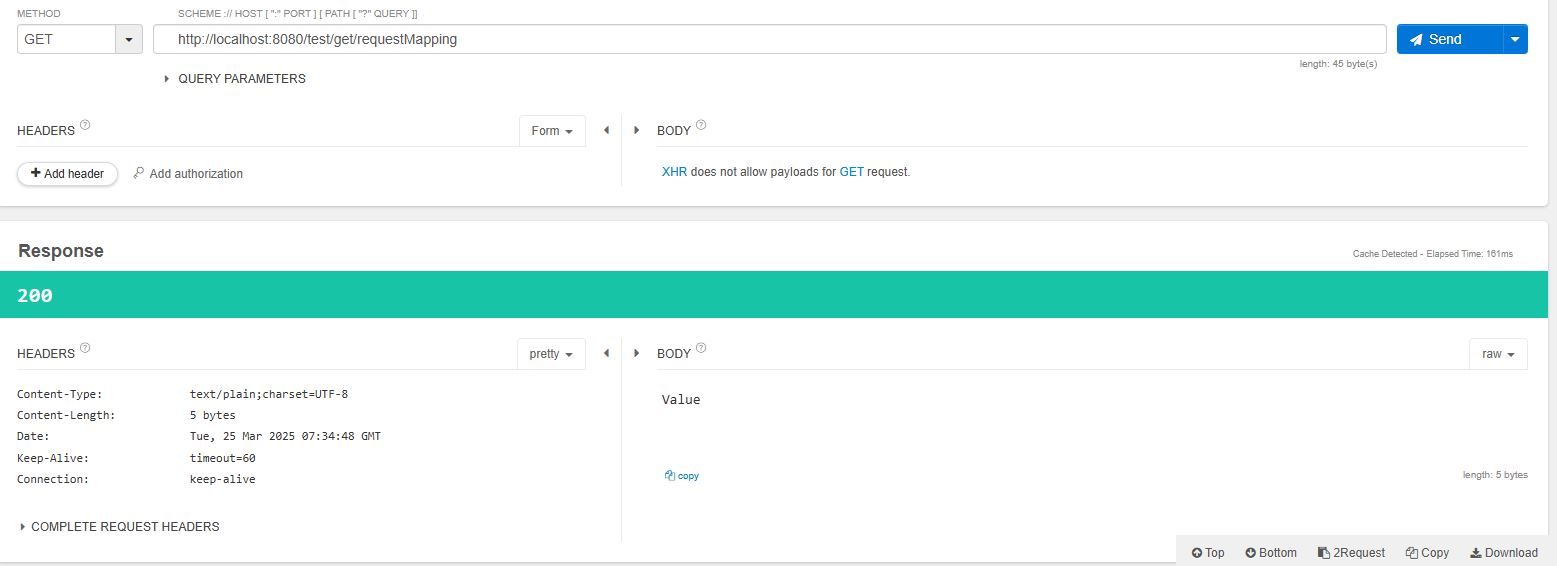 예를 들어, GetController 내부에 메서드를 정의하고 요청 URL을 /method1으로 지정한다면 이 메서드를 호출하기 위해서는 /test/get/method1을 호출해야 한다는 것이다.