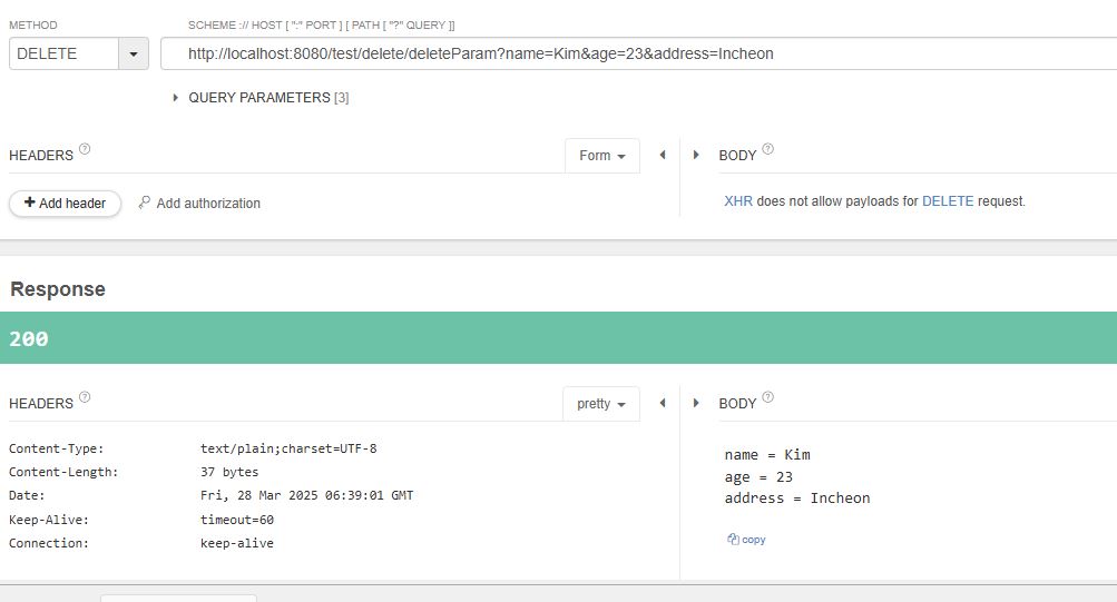 public String deleteParam(@RequestParam String name, @RequestParam int age, @RequestParam String address){