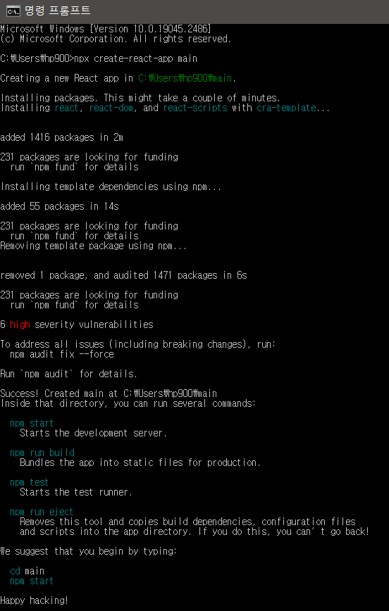 "scripts": { "start": "react-scripts start", // "build": "react-scripts build", "test": "react-scripts test", "eject": "react-scripts eject" },package.json에는 4가지 debug모드가 있다.