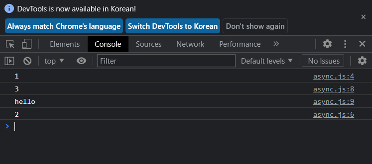 async function fetchUser() { return 'name'; } const user = fetchUser(); user.then(console.log); console.log(user);