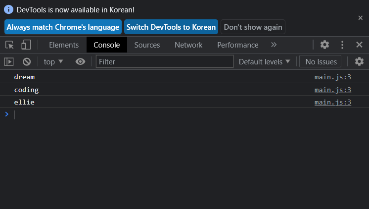 (console: 코드에서 작성한 메세지를 확인하고 자바스크립트를 실행할 수 있다.)