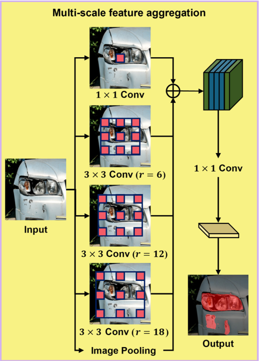 - 3×3 dilated conv (r = 6, 12, 18)