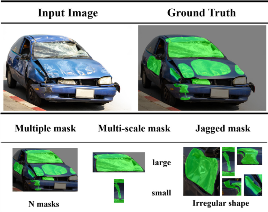 ⇒ 차량 손상 segmentation은 다양한 크기, 다중 객체, 불규칙한 경계가 동시에 존재하는 MMSJM 문제이며, 기존 방법들은 이를 통합적으로 해결하지 못한다.