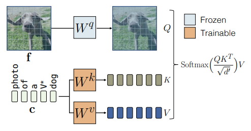 V ∗ t o k e n V^*\ token V ∗ t o k e n : 희귀 토큰 임베딩으로 초기화 + W k W_k W k , W v W_v W v 와 함께 동시에 최적화