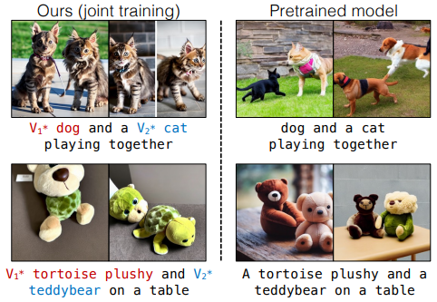 소수의 예시만으로도 모델이 새로운 개념을 빠르게 학습하도록 만들 수 있을까? 나아가, 여러 개의 새로운 개념을 함께 조합해 생성할 수 있을까?