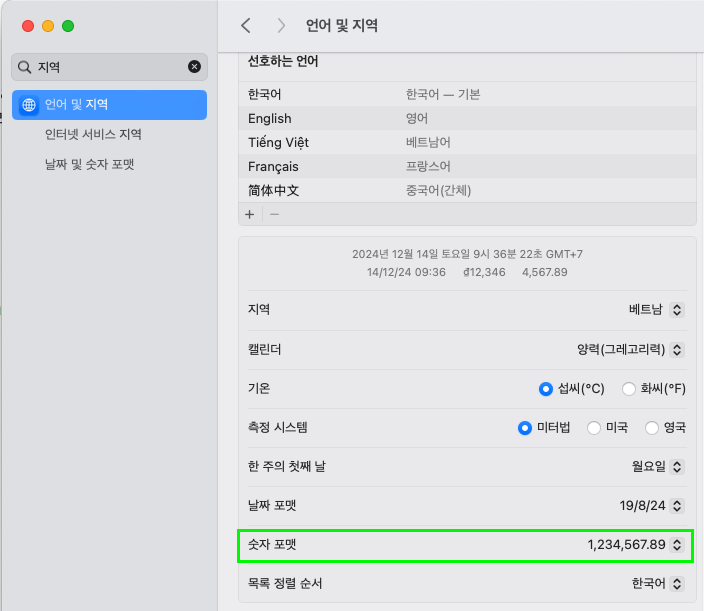 - 나의 맥북 숫자 포맷을 변경한 후에 해결