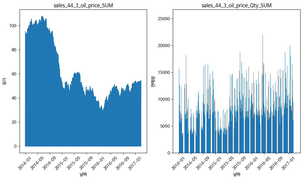 휘발유 가격과 상품 판매량 추이 비교