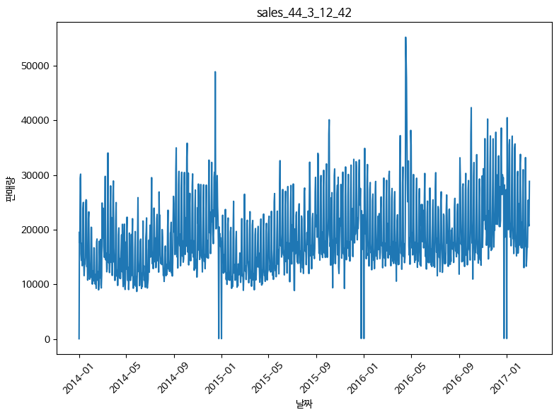 44번 매장의 상품번호 3, 12, 42 세가지 항목을 정하여 진행하였습니다.