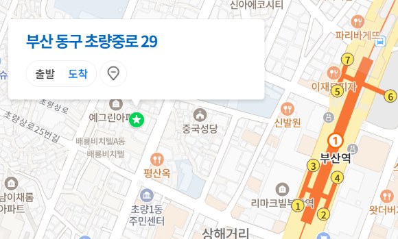 부산역에서 1번이나 3번출구 나와서 오시면 됩니당