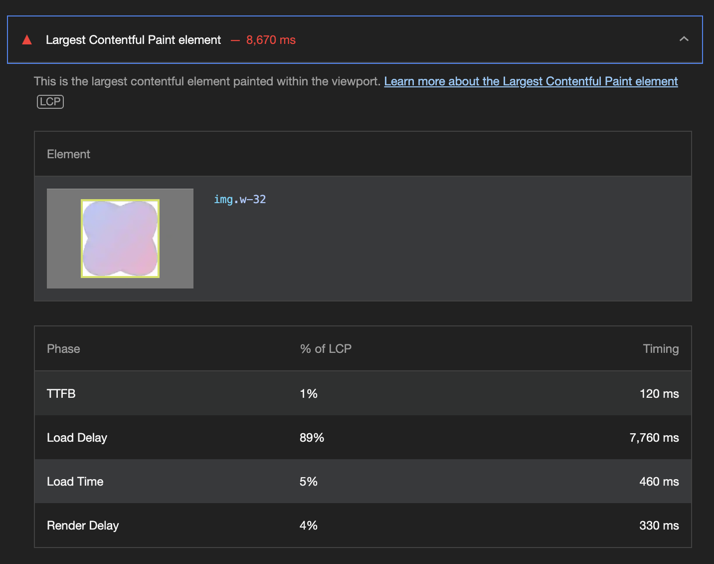 를 만나야 이미지 로딩을 시작한다 하지만 미리 중요한 이미지(LCP 요소)를 알고 있다면, 먼저 요청하게 할수있다.