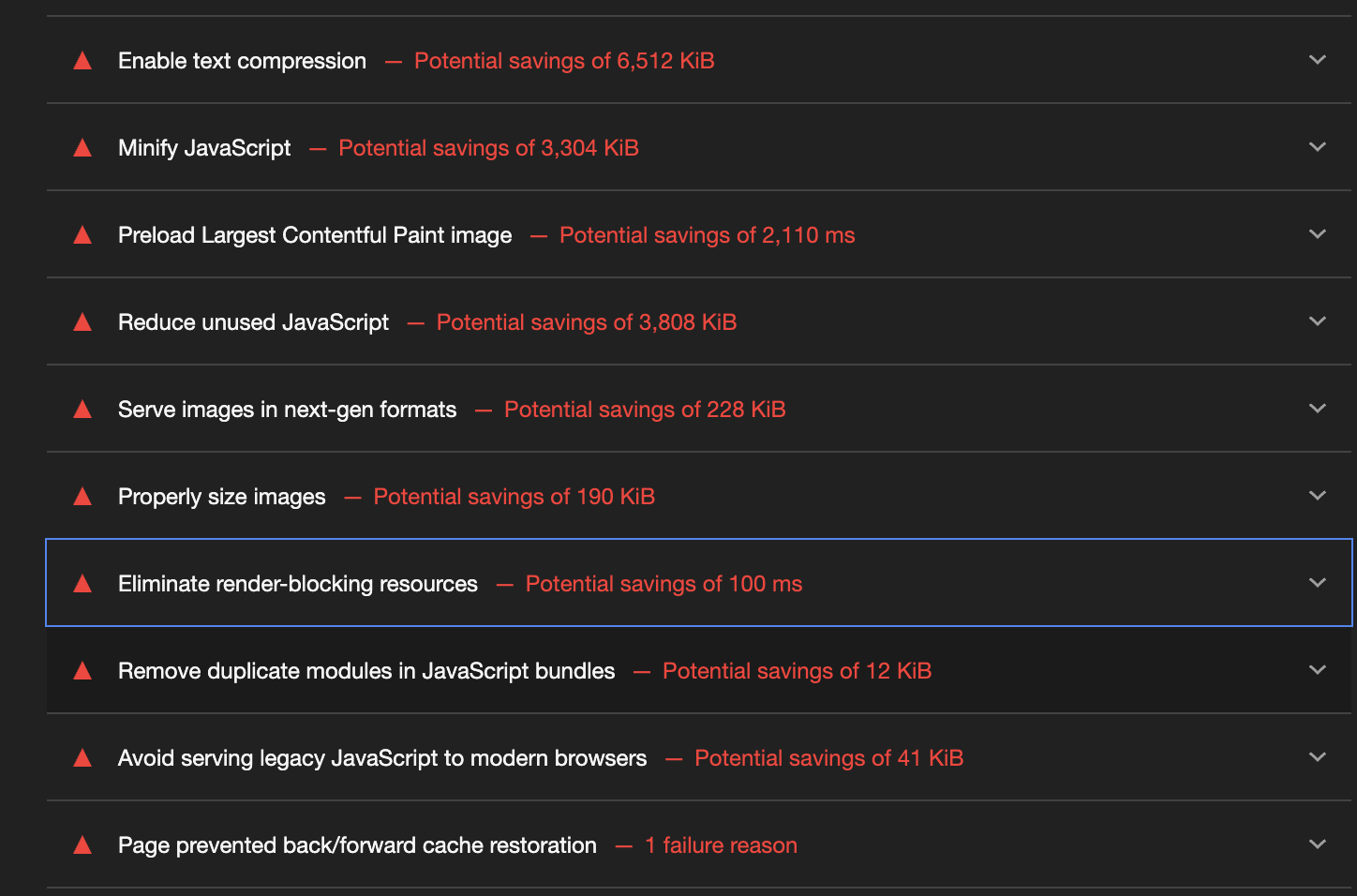 친절하게도 Lighthouse 에서는 개선을 해야되는 부분들을 자세히 알려준다
