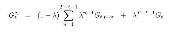 λ가 0일때는 첫번째 항만 부트스트랩으로 활용하게 되며, bias가 존재한다.