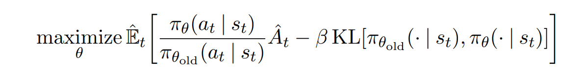 이 방법은 β를 몇으로 해야하는지, 학습중에 바뀌어야 하는지 알기 어렵기 때문에 TRPO에서 constraint방법을 이용했다고 한다.